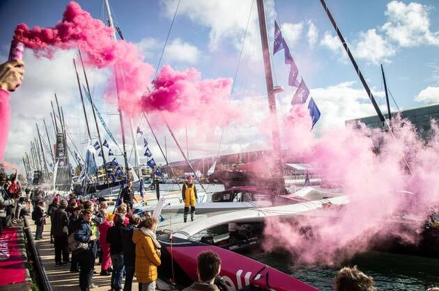 C’est un départ avancé pour raison météo, mais les équipages des Ocean Fifty ont tout de même pu bénéficier d’un dernier bain de foule ensoleillé dans le bassin Paul Vatine.